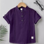 Boys Linen Shirt Button Down Henley Short Sleeve Casual Summer-True Purple