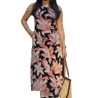 Rayon Fit and Flare Below The Knee One Piece Dresses for Women | Dress-Multi PINK