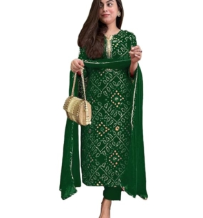 Women’s Rayon Viscose Straight Bandhej Printed Kurta with Pant-Blue